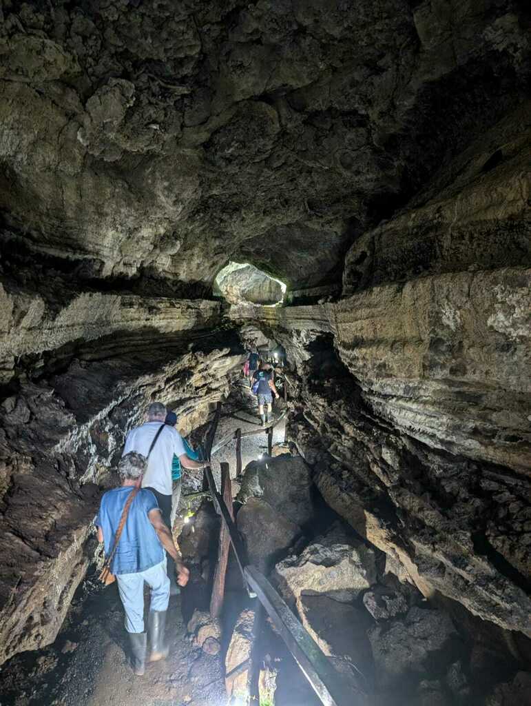 Exploring Galapagos cave interior.