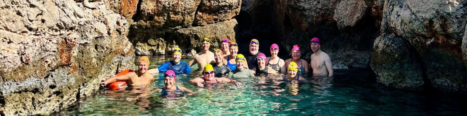 This trip is designed for swimmers who enjoy both crossings and coastal swims, including exploring sea caves, tunnels, and arches.
